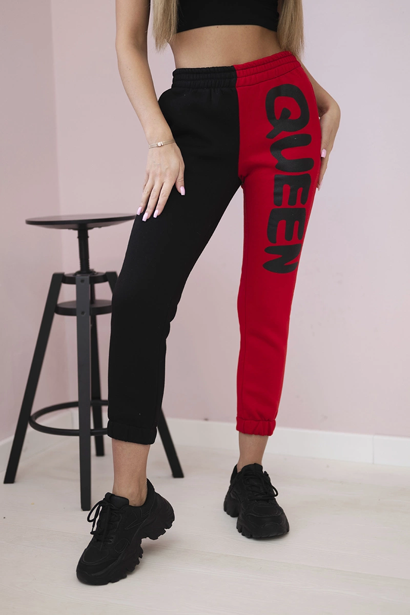 Tieto originálne dámske tepláky s nápisom QUEEN sú skvelou voľbou pre ženy, ktoré si cenia pohodlie a zároveň sa chcú odlíšiť. Dvojfarebný dizajn priťahuje pozornosť a dodáva outfitu originálny charakter – ideálny na každodenné nosenie, voľné stretnutia s priateľmi či víkendový oddych. Elastický pás a príjemný materiál zaručujú celodenné pohodlie. Tepláky sa skvele hodia k basicovým tričkám a mikinám, čím vytvárajú štýlový športovo-mestský vzhľad. Vďaka nápisu „QUEEN“ na nohavici sa každá žena bude cítiť výnimočne a sebavedomo. Veľkosť je univerzálna a vhodná pre ženy veľkostí S, M alebo L.