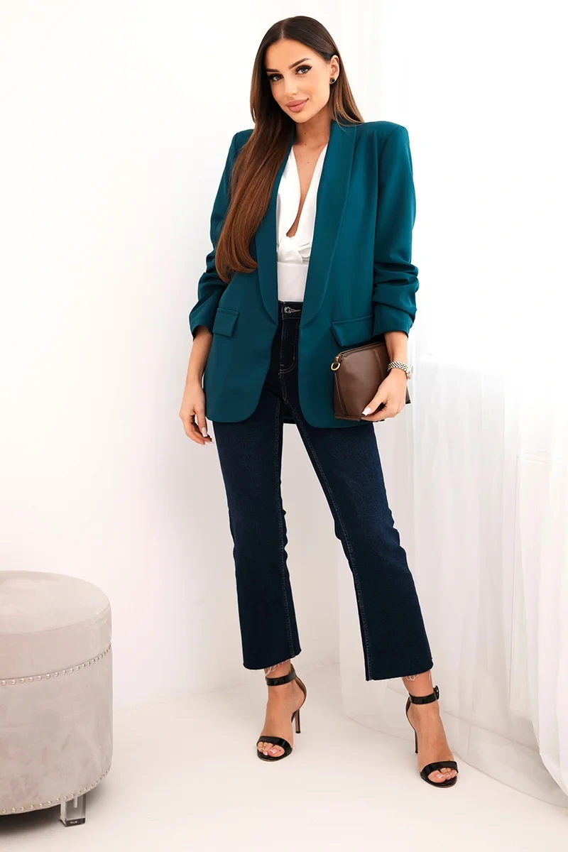 Elegantná bunda s chlopňami tmavozelená