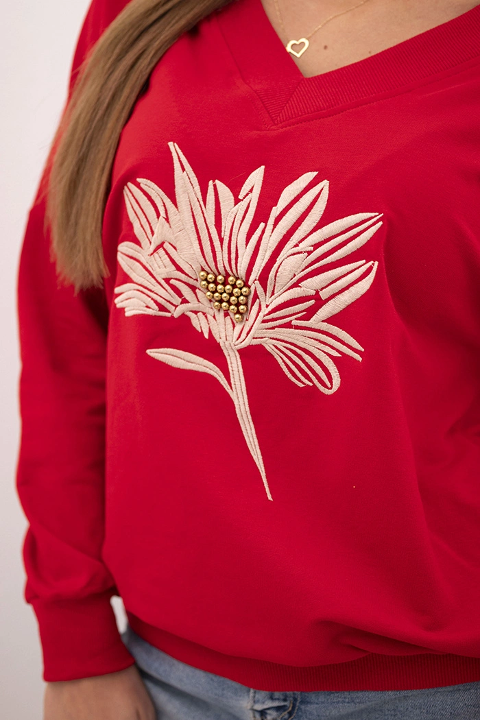 Pohodlná a štýlová dámska blúzka s výstrihom do tvaru V je ideálnou voľbou na každý deň. Jej voľnejší, oversize strih zaručuje pohodlie pri nosení a slobodu pohybu, zatiaľ čo efektná výšivka kvetu na prednej strane dodáva ženského čaru. Rukávy o dĺžke 3/4 dodávajú blúzke ľahkosť a robia ju ideálnou na teplejšie dni, ale aj ako vrstvu na chladnejšie večery. Táto blúzka sa hodí k džínsom, legínam, ale aj k sukni - skvelá voľba na nákupy, prechádzku, stretnutie s priateľmi alebo relax doma. Vďaka vysokej kvalite bavlneného materiálu je príjemná na dotyk a dobre sa nosí. Veľkosť je univerzálna a bude vhodná pre dámy vo veľkosti S, M alebo L.