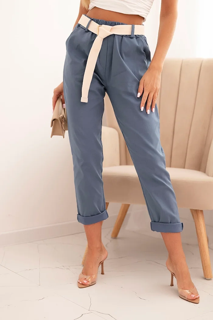 Trendy a pohodlné dámske nohavice s opaskom sú ideálnou voľbou pre ženy, ktoré oceňujú štýl a pohodlie. Vyrobené z vysoko kvalitného materiálu, poskytujú voľnosť pohybu a výborné prispôsobenie postave. Majú elastický pás a praktický opasok, ktorý zvýrazňuje pás. Ich klasický strih s vyhrnutými nohavicami ich robí vhodnými ako na bežné, tak aj elegantnejšie outfity. Skvele sa hodia k blúzke alebo ľahkému svetru. Veľkosť je univerzálna a zodpovedá veľkostiam S, M alebo L.