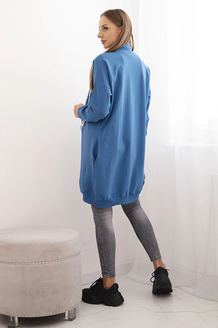 Mikina bola vyrobená z mäkkej bavlnenej pleteniny s prídavkom elastanu, vďaka čomu poskytuje voľnosť pohybu a vysoký komfort nosenia. Dlhý strih, praktický zips a pohodlné bočné vrecká z nej robia ideálnu voľbu pre každodenné stylingy – na prechádzku, do práce alebo na nákupy.