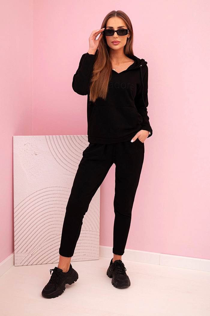 Mikina má pohodlnú kapucňu so šnúrkou a klasický strih s dlhým rukávom. Nohavice majú elastický pás a zúžené nohavice, čo robí súpravu modernou a športovou. Ideálny na každý deň, na behanie po meste, do posilňovne alebo na oddych doma.