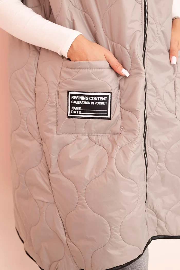 Dámska prešívaná vesta Plus Size s kapucňou na zips fango