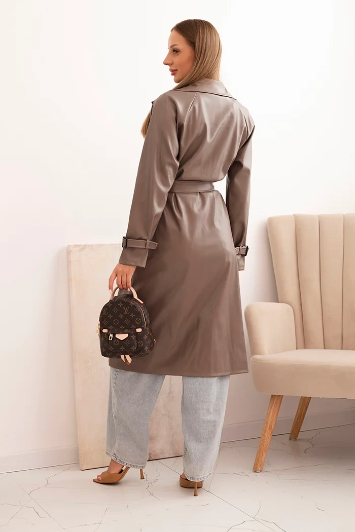 Dámsky trench z ekokože s klasickým golierom a viazaným pásom fango