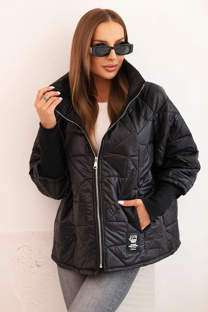 Dámska prešívaná bunda s krátkym strihom a stojáčikom čierna
