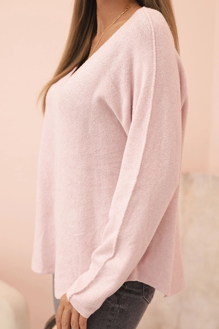 Dámsky sveter z viskózy s výstrihom do V tmavý pudrový ruž