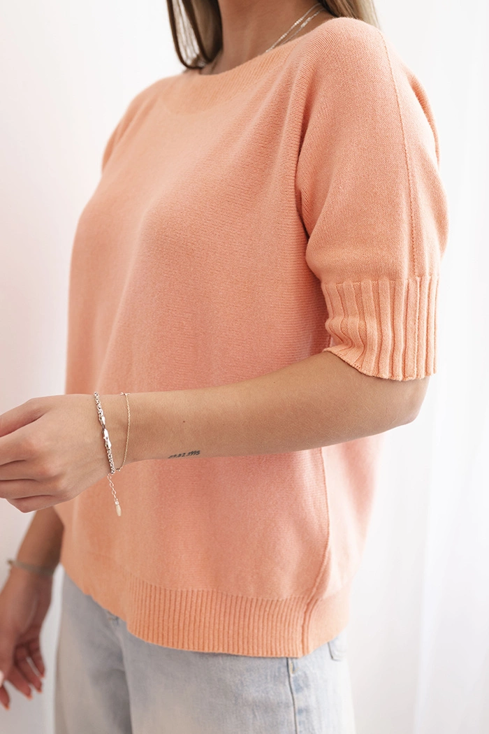Dámsky sveter z viskózy s krátkym rukávom marhuľový