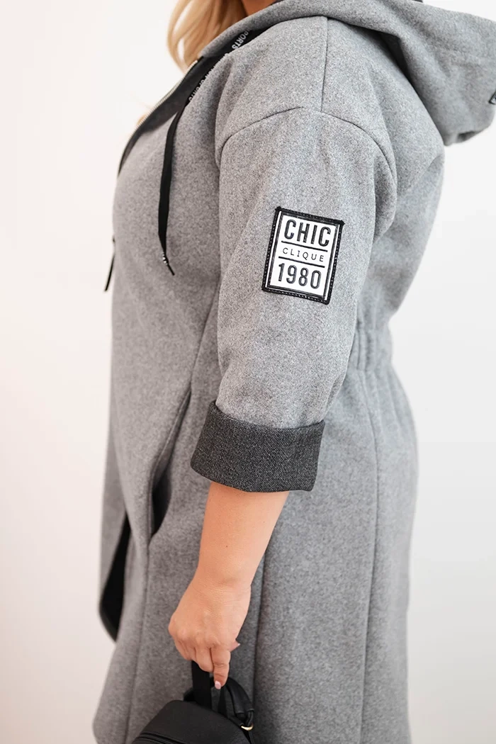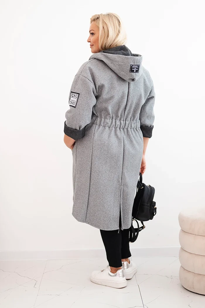 Štýlový dámsky kabát plus size z semišu je skvelou voľbou pre ženy, ktoré oceňujú pohodlie a eleganciu v každodenných outfitov. Vyrobený z mäkkého materiálu imitujúceho semiš, vyzerá veľmi moderne a je príjemný na dotyk. Rozopínateľný strih s kapucňou robí kabát praktickým a skvele sa hodí ako v chladnejších dňoch, tak aj ako doplnok mestských outfitov.