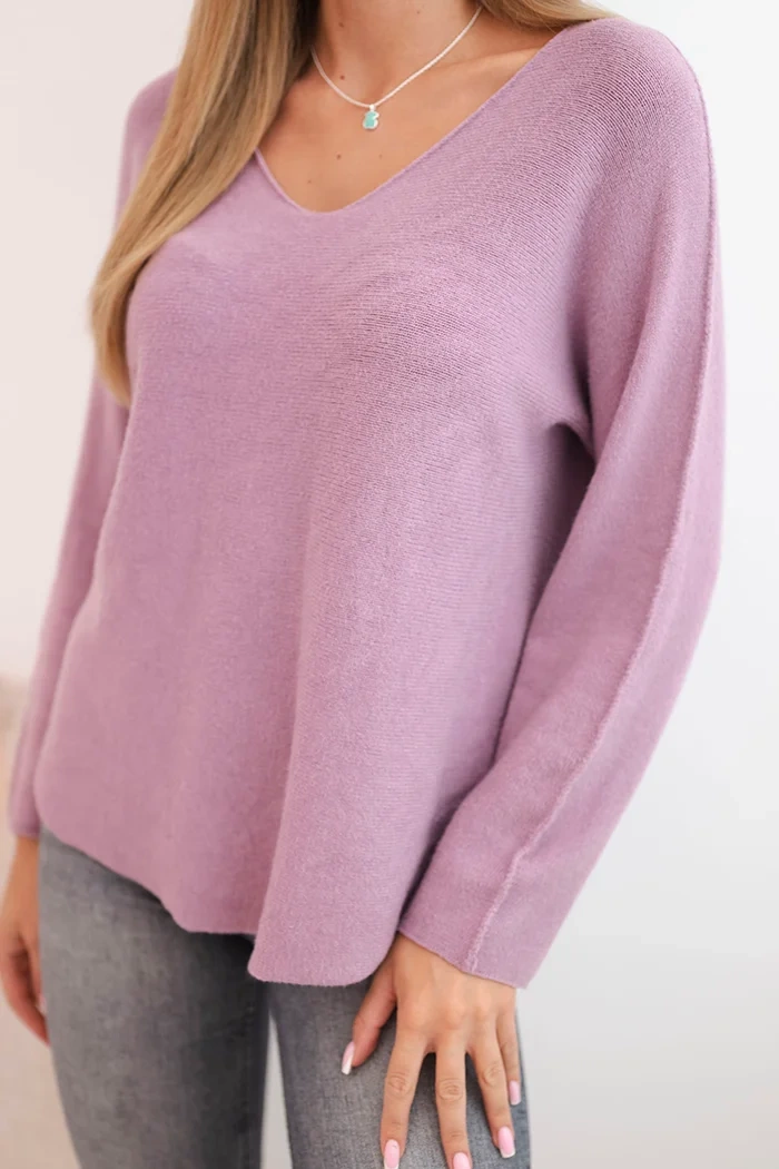 Dámsky sveter z viskózy s výstrihom do V fialový