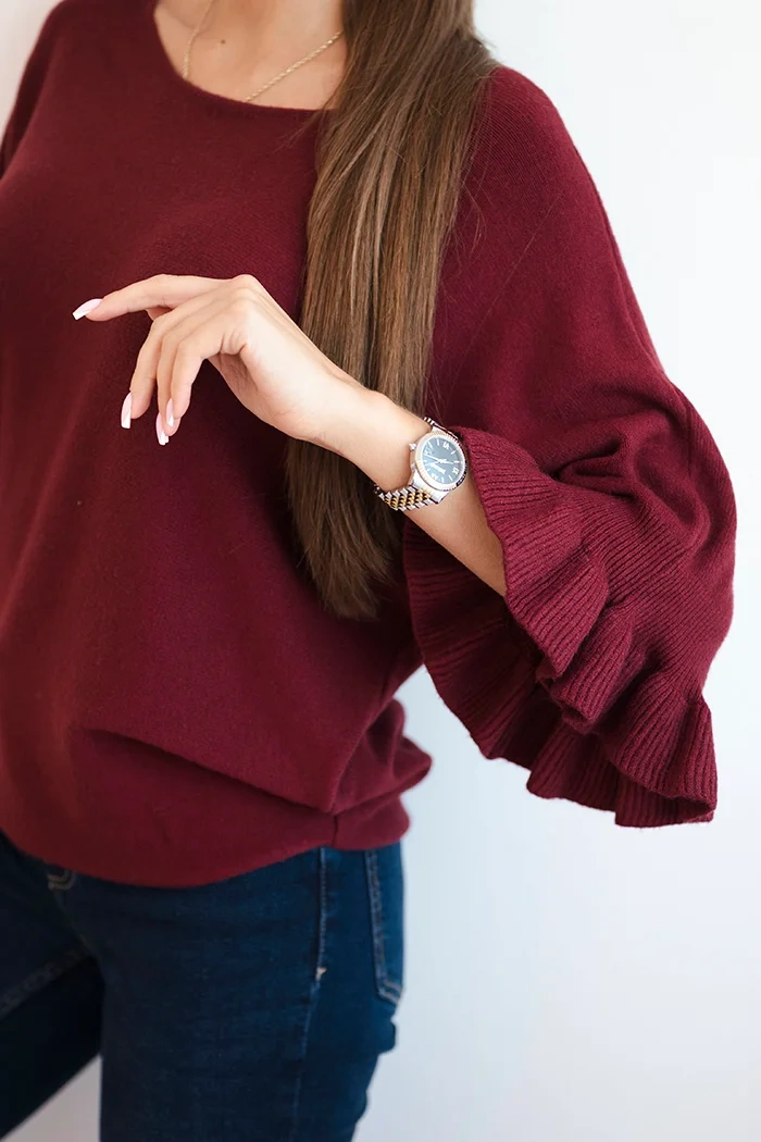 Tento sveter sa osvedčí ideálne ako v každodenných stylingoch, tak aj v elegantnejších súpravách – stačí pridať klasické nohavice alebo sukňu. Ozdobné rukávy s dekoratívnym nariasením dodávajú celku nezvyčajný charakter. Je to skvelý návrh pre ženy, ktoré si cenia pohodlie, univerzálnosť a nadčasový dizajn.