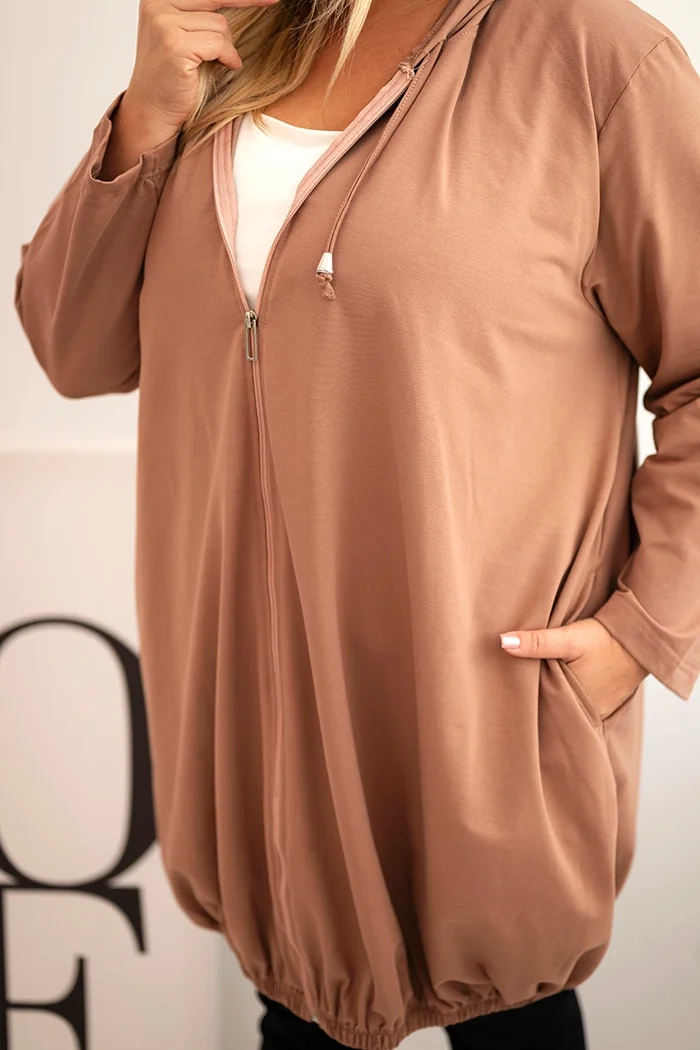 Dámska mikina Plus Size bavlnená s kapucňou a zipsom cappuccino
