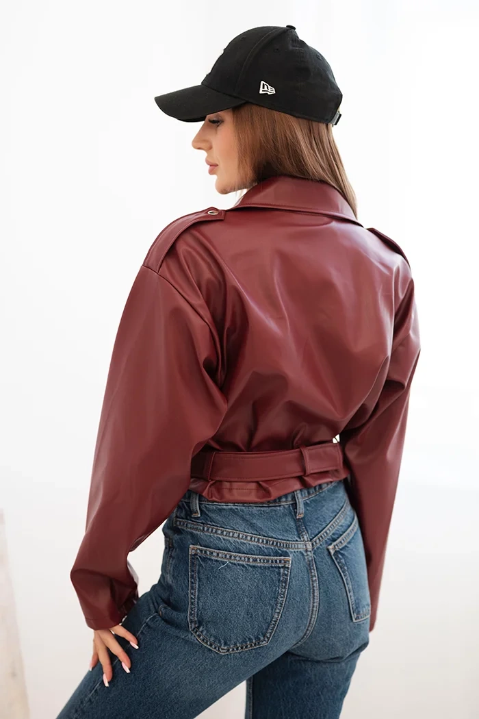 Moderná dámska bunda s krátkym strihom je návrh pre ženy, ktoré si cení mestský štýl a pohodlie. Model vyrobený z hladkého, mierne tuhého materiálu, skvele sedí a priťahuje pozornosť minimalistickým dizajnom. Bunda má efektný golier, ozdobné cvoky, zips a pás v páse, ktorý umožňuje jemné prispôsobenie postave.