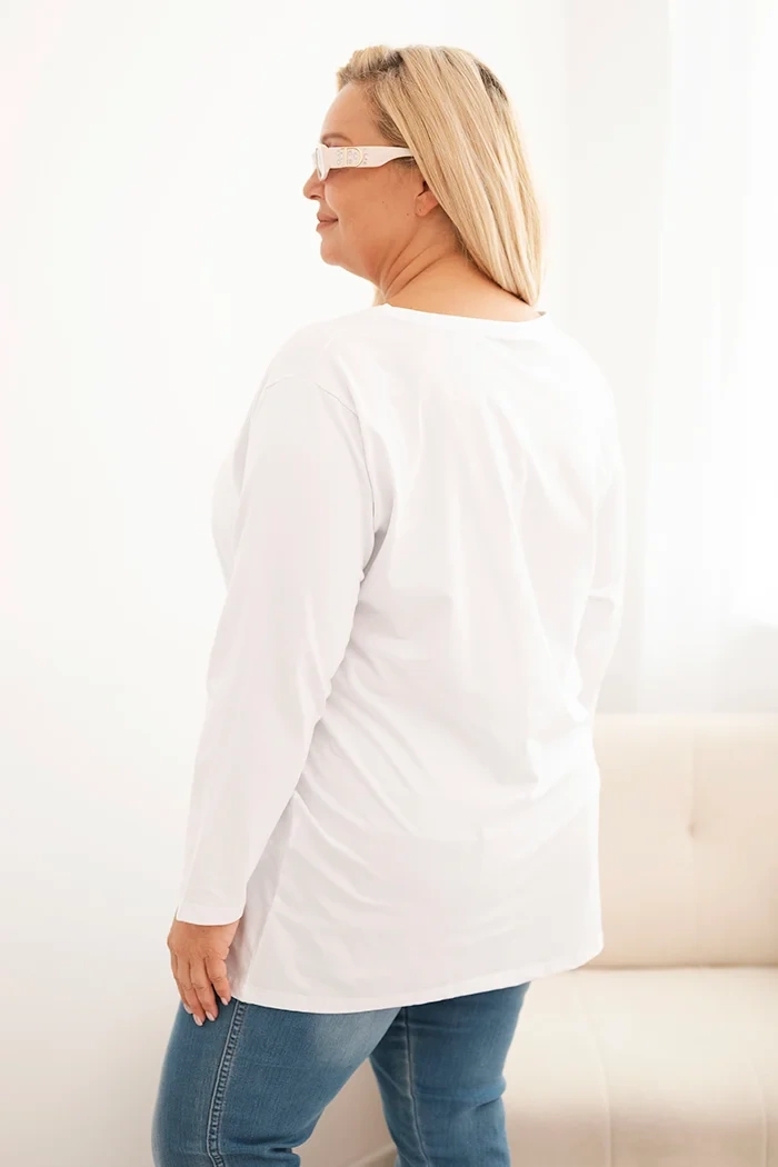 Dámska blúzka Plus Size bavlnená s okrúhlym výstrihom biela