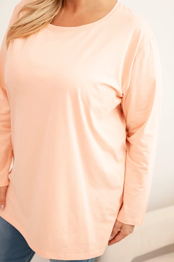 Dámska blúzka Plus Size bavlnená s okrúhlym výstrihom marhuľová