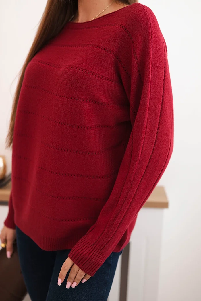 Dámsky viskózový sveter s čipkovaným vzorom a dlhým rukávom bordový