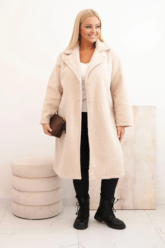 Dámsky kabát Plus Size s vlnou a veľkým golierom béžový
