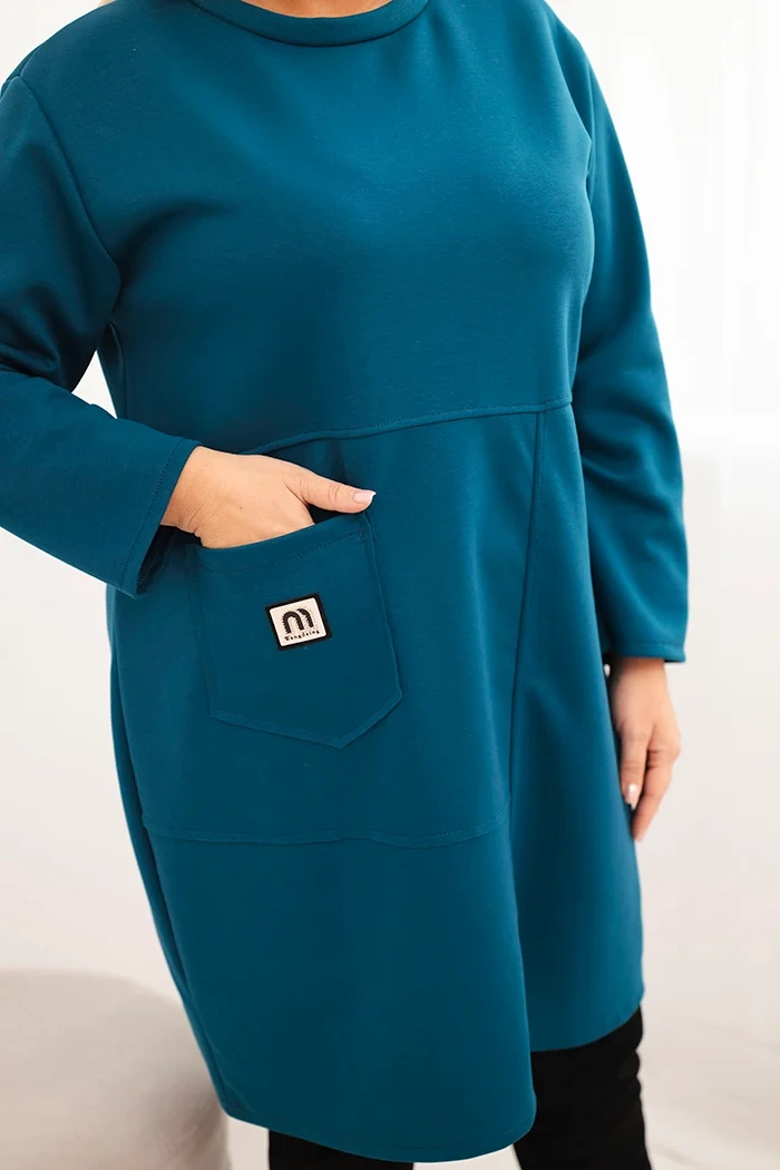 Dámska sukňa Plus Size s vreckom a 3/4 rukávom maslová morská