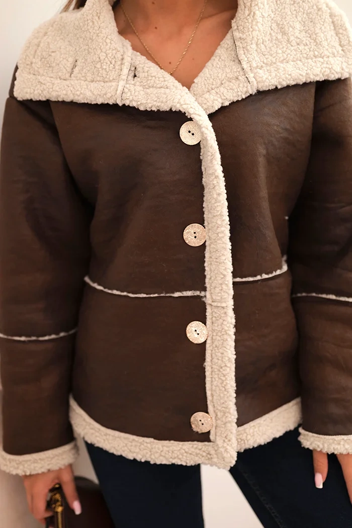 Dámska plus size bunda s efektom baránka je ideálnou voľbou na chladné dni pre ženy, ktoré si cenia pohodlie a štýl. Mäkká na dotyk, zateplená príjemným baránkom, sa skvele hodí do každodenných outfitov. Klasický strih so zapínaním na gombíky, širokým golierom a kontrastným zakončením robí bundu módnou a ženskou.