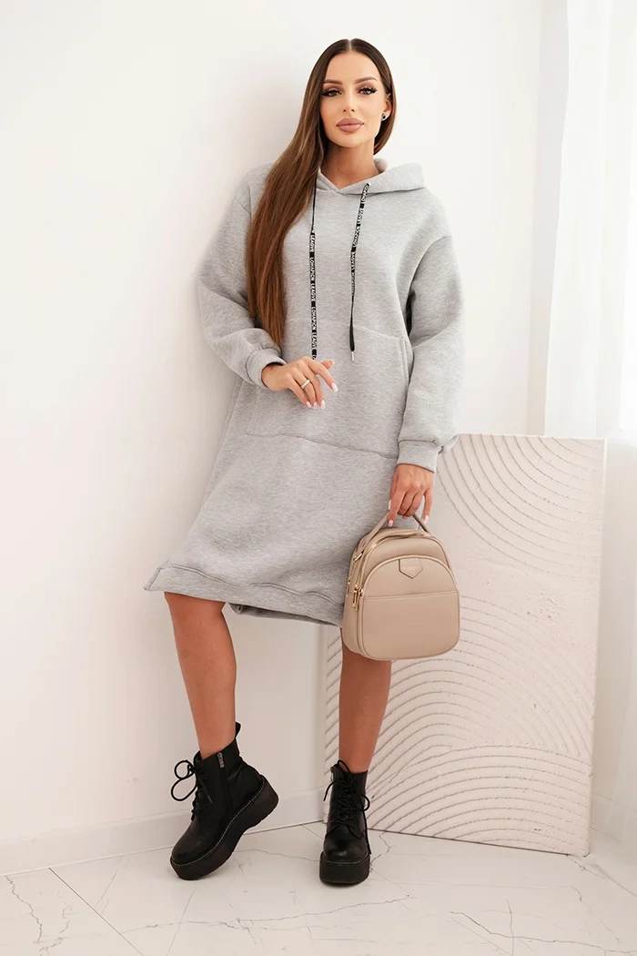 Dámska bavlnená mikinová šaty s kapucňou zateplená šedá