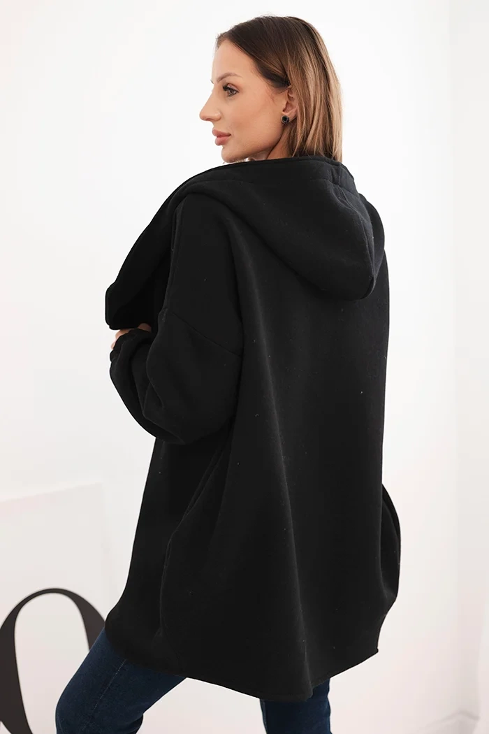 Dámska zateplená mikina s kapucňou a asymetrickým zipsom čierna