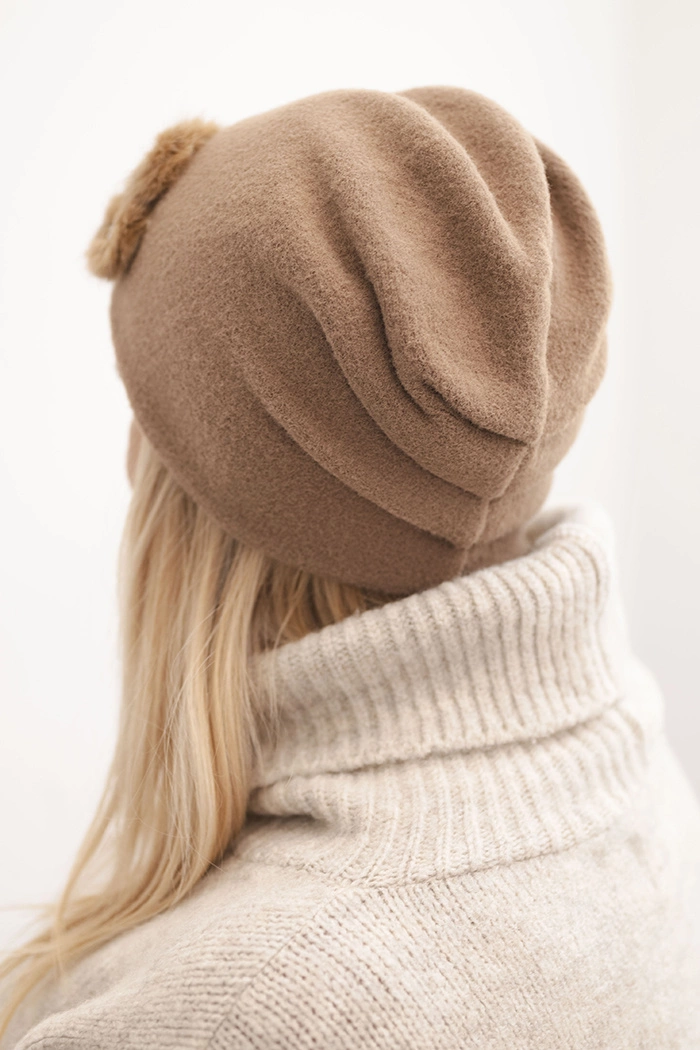 Štýlová dámska čiapka v elegantnom vydaní, ideálna na jeseň a zimu. Vyrobená z príjemného, teplého materiálu, dobre sa prispôsobuje hlave, poskytujúc komfortnú teplotu.