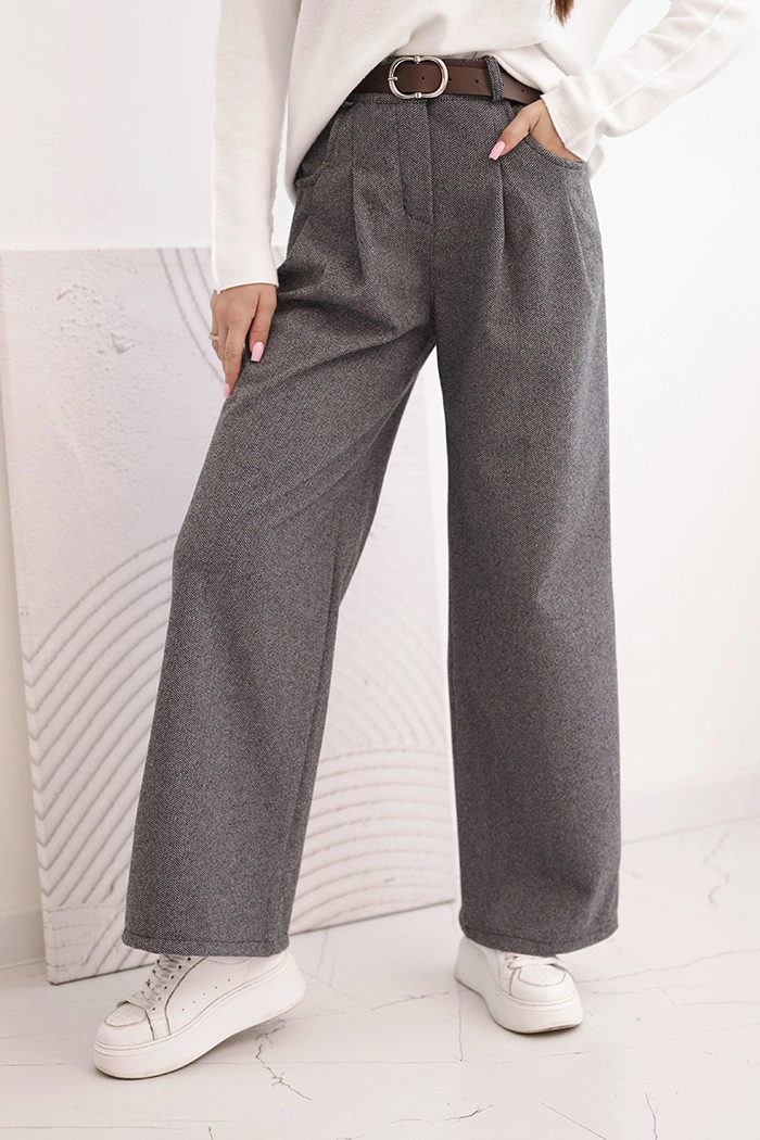Dámske nohavice so širokým nohavicom a pásom grafitové