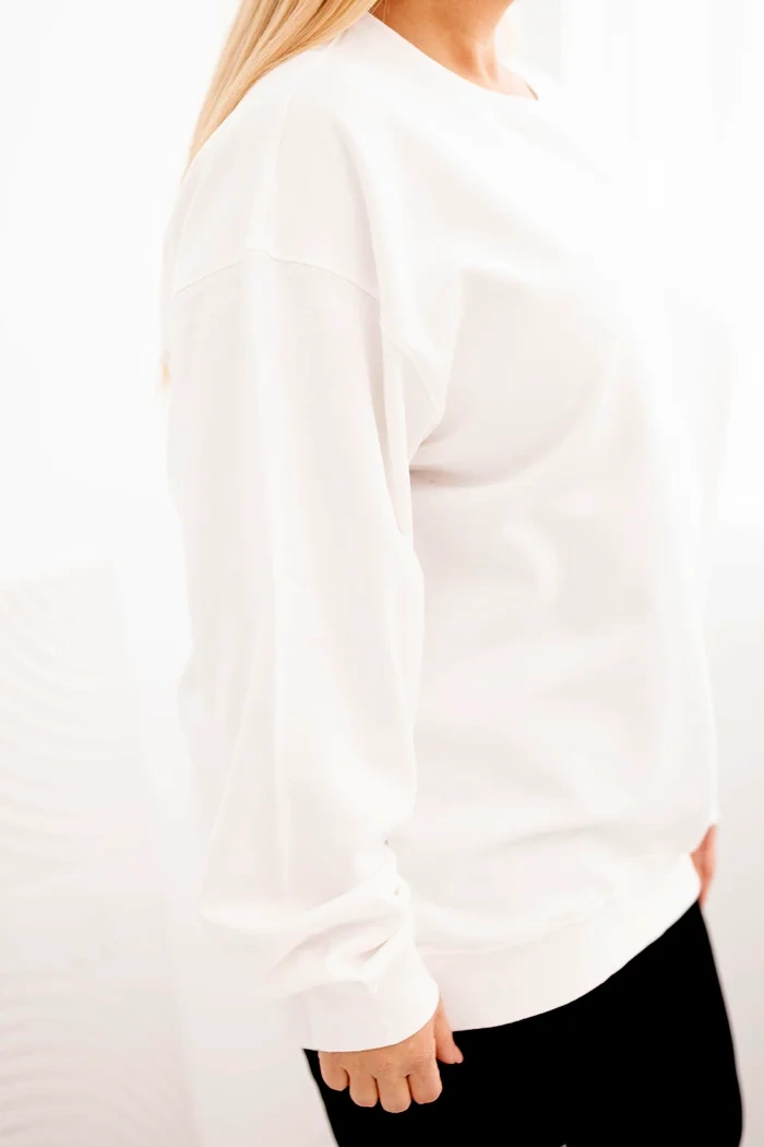Dámska mikina s okrúhlym výstrihom Plus Size bavlnená basic biela