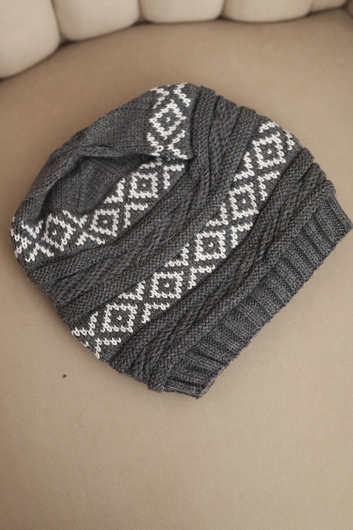 Dámska zimná čiapka s vzorom a vlnou K425 grafitová