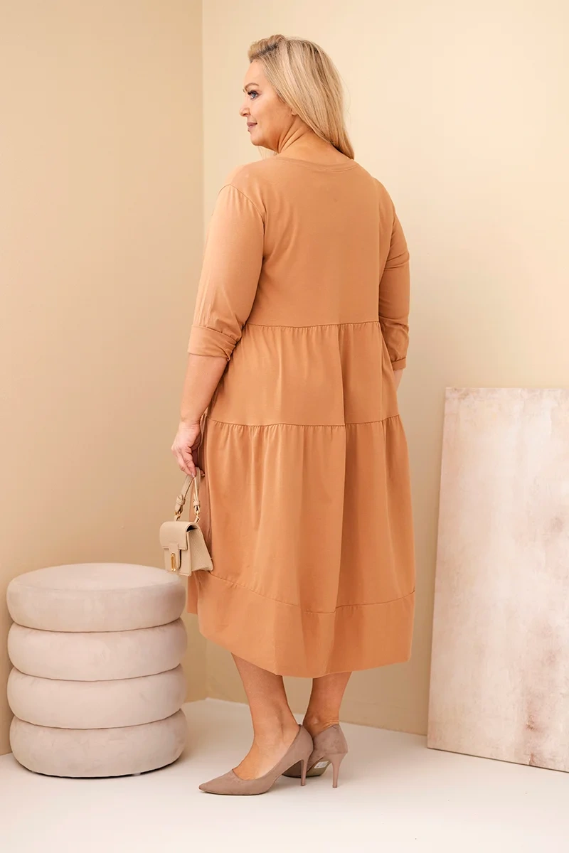 Dámska bavlnená sukňa Plus Size s volánmi a podhnutým rukávom camelová