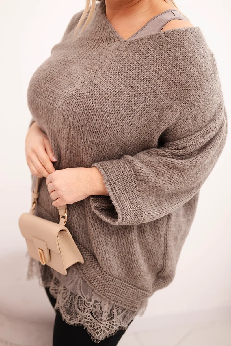 Tento jedinečný dámsky set pozostáva z hrubého sveteru a ľahkej blúzky s čipkovým zakončením, čo je ideálne spojenie pohodlia a ženského štýlu. Sveter s mäkkou, nadýchanou štruktúrou má výstrih do V a voľnejší strih, ktorý sa krásne prispôsobuje postave a zabezpečuje pohodlné nosenie. Ľahká blúzka pod ním pridáva celku jemnosť a čipkový spodok vytvára elegantný vrstvený efekt.