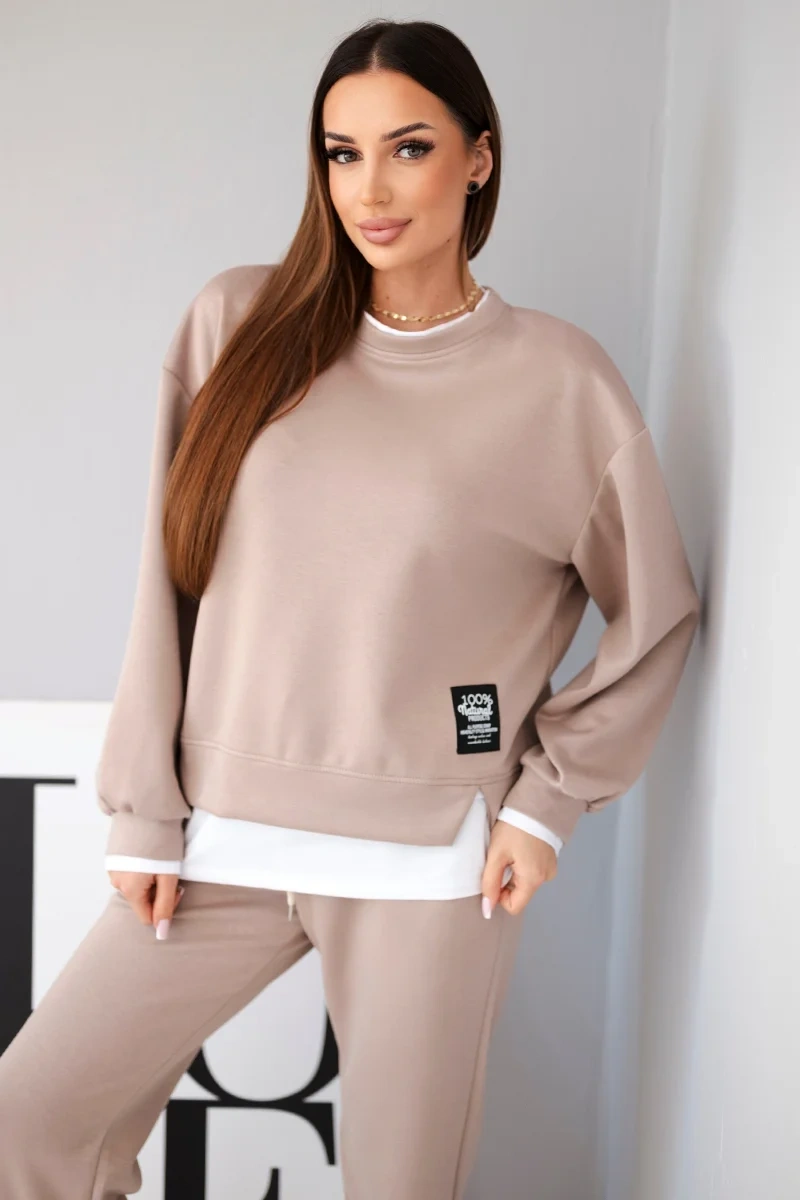 Dámsky komplet s maslovou voľnou mikinou a teplákovými nohavicami fango