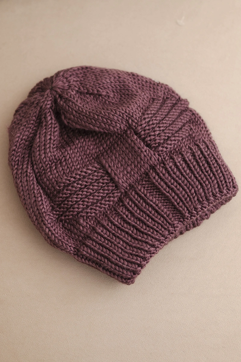 Dámska zimná čiapka akrylová s ozdobným pletením K462 tmavo fialová