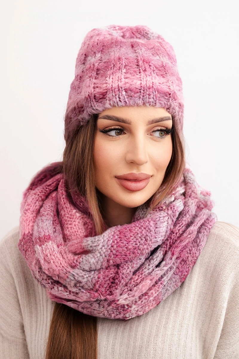 Štýlová, mäkká zimná súprava pozostávajúca z čiapky a nákrčníka. Vyrobená z nadýchaného úpletu s pridaním mohéru, vlny a polyamidu – ideálna na chladné dni. Jemná farebná paleta a módny pletený vzor mu dodávajú výnimočné čaro a ženský charakter.