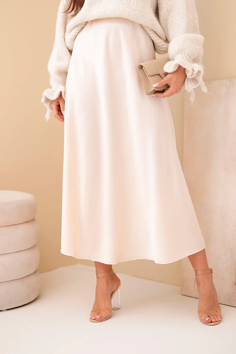 Elastický pás sa prispôsobuje siluete, čo zaručuje pohodlie po celý deň. Hladká, jednoliata tkanina zabezpečuje, že sukňa sa ideálne hodí k rôznym štýlom – ako k elegantnej blúzke, tak aj k jednoduchému tričku.