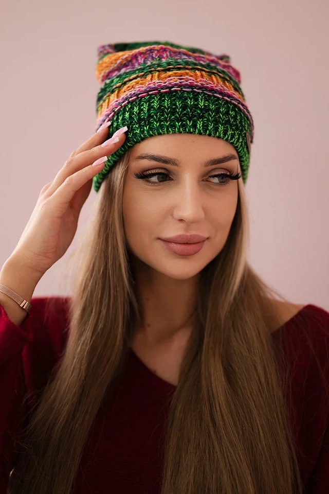 Dámska čiapka s pomponom Judyta K347 oranžová