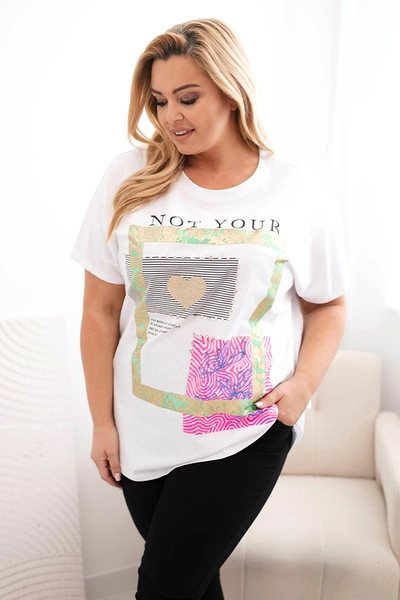 Dámská bavlněná halenka Plus Size se zlatým nápisem bílá + zelená