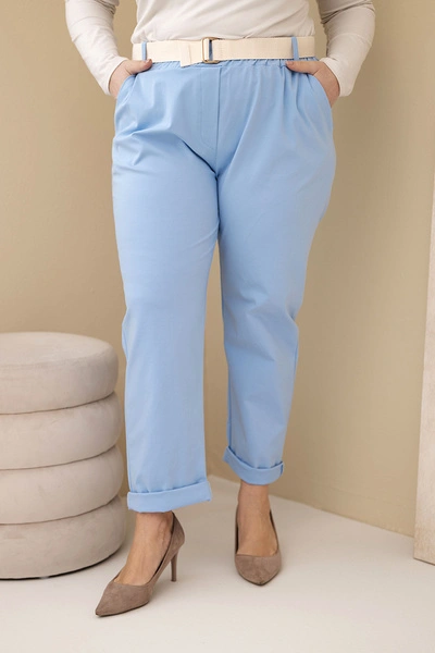 Dámské bavlněné kalhoty Plus Size s páskem modré