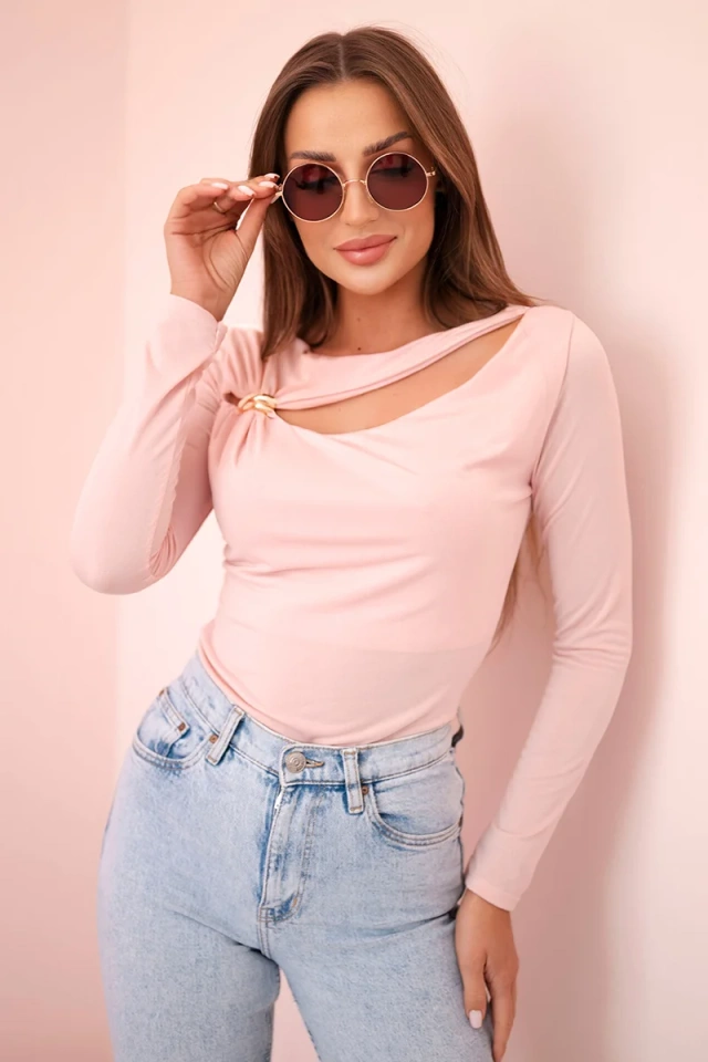 Dámske body blúzka s dlhým rukávom a asymetrickým výstrihom púdrová ružová
