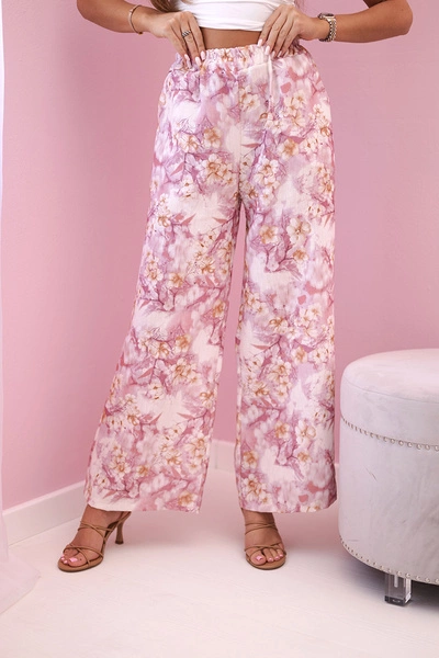 Dámske široké nohavice s kvetinovou potlačou ružový