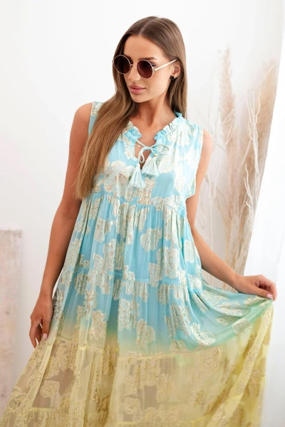 Dámska bavlnená pelerína so zaviazaním v páse tyrkys